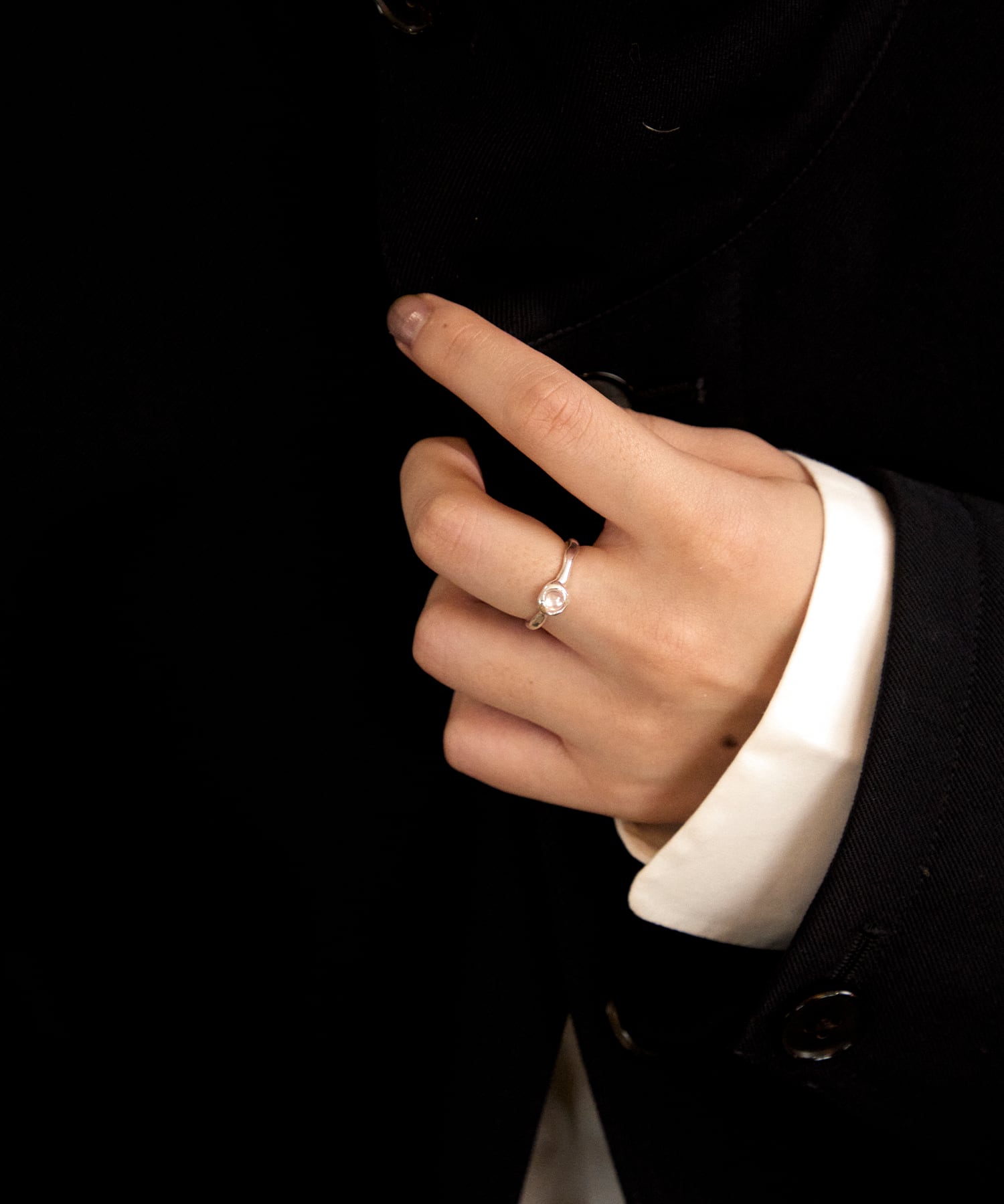 中央に留めたローズクォーツは淡く柔らかいピンク色が特徴でコーディネートのポイントになります。