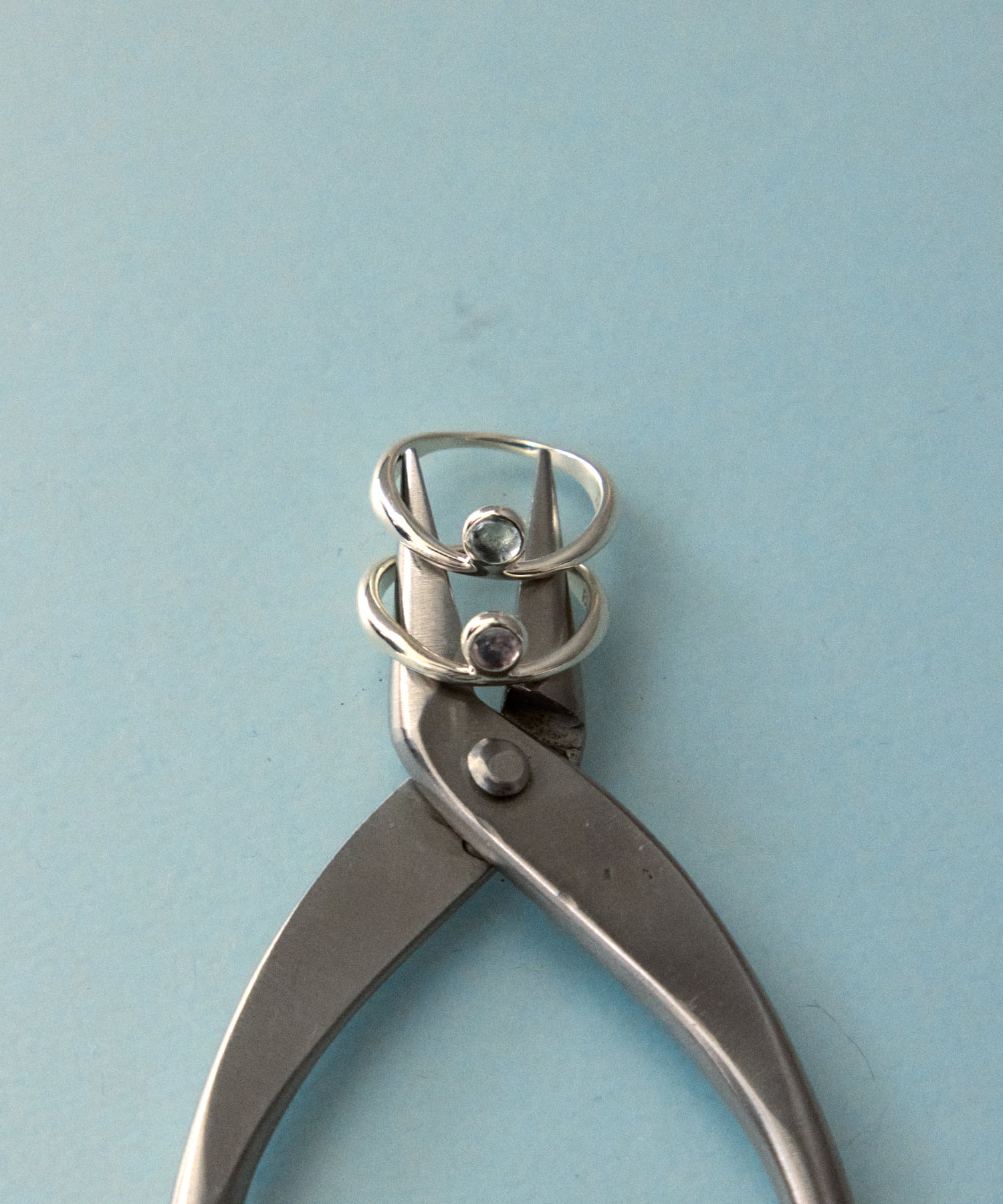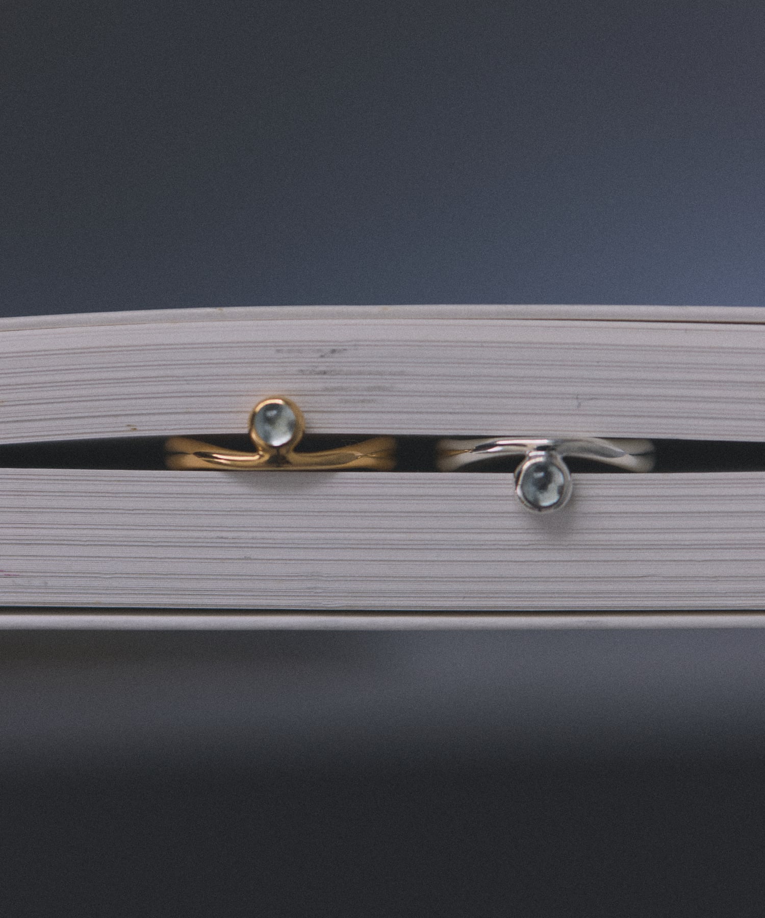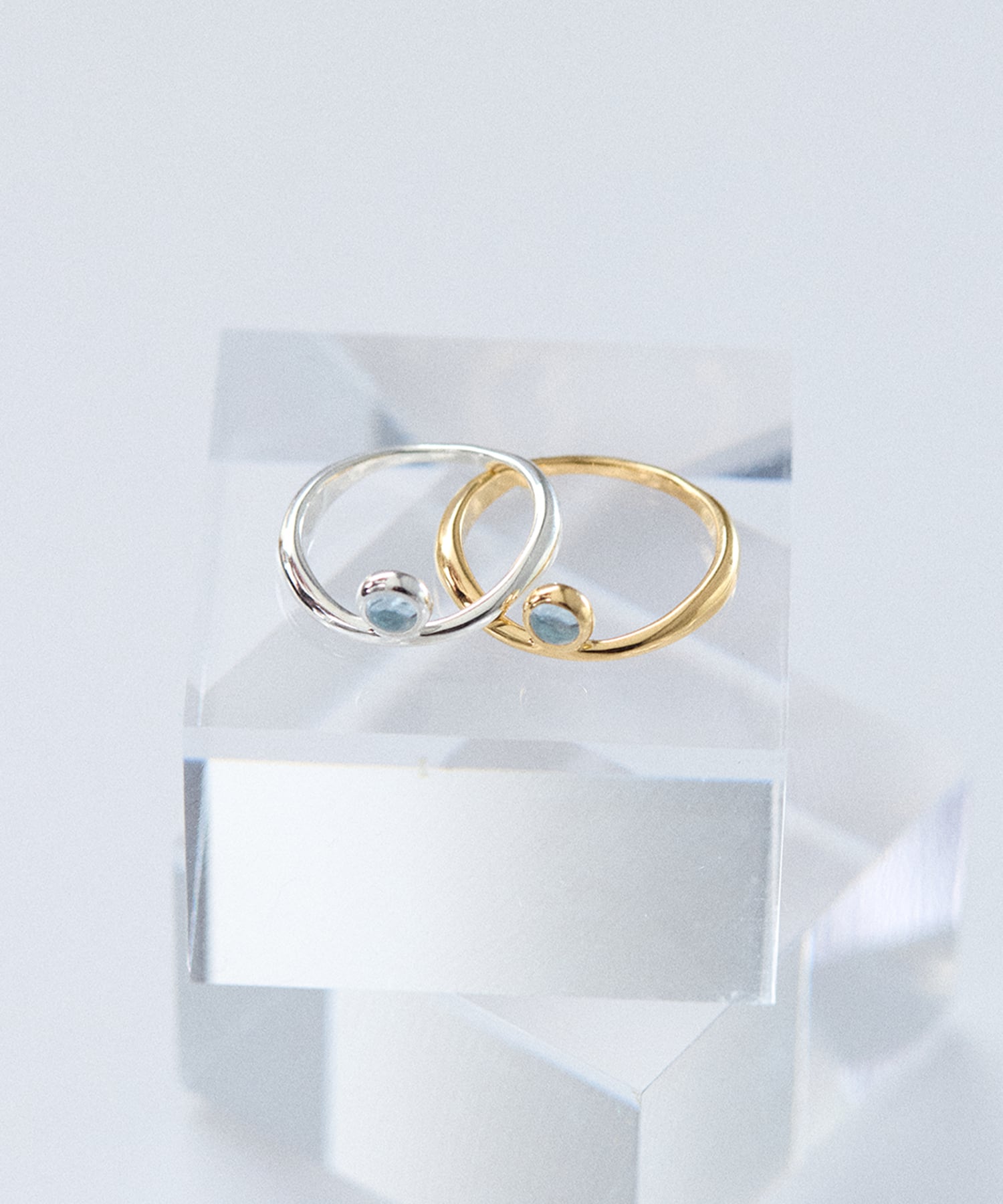 肌の上をなぞるように描かれたやわらかな曲線に、澄んだ美しい青色のアクアマリンを添えたリング。