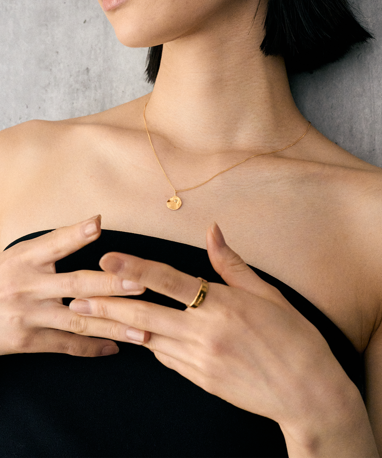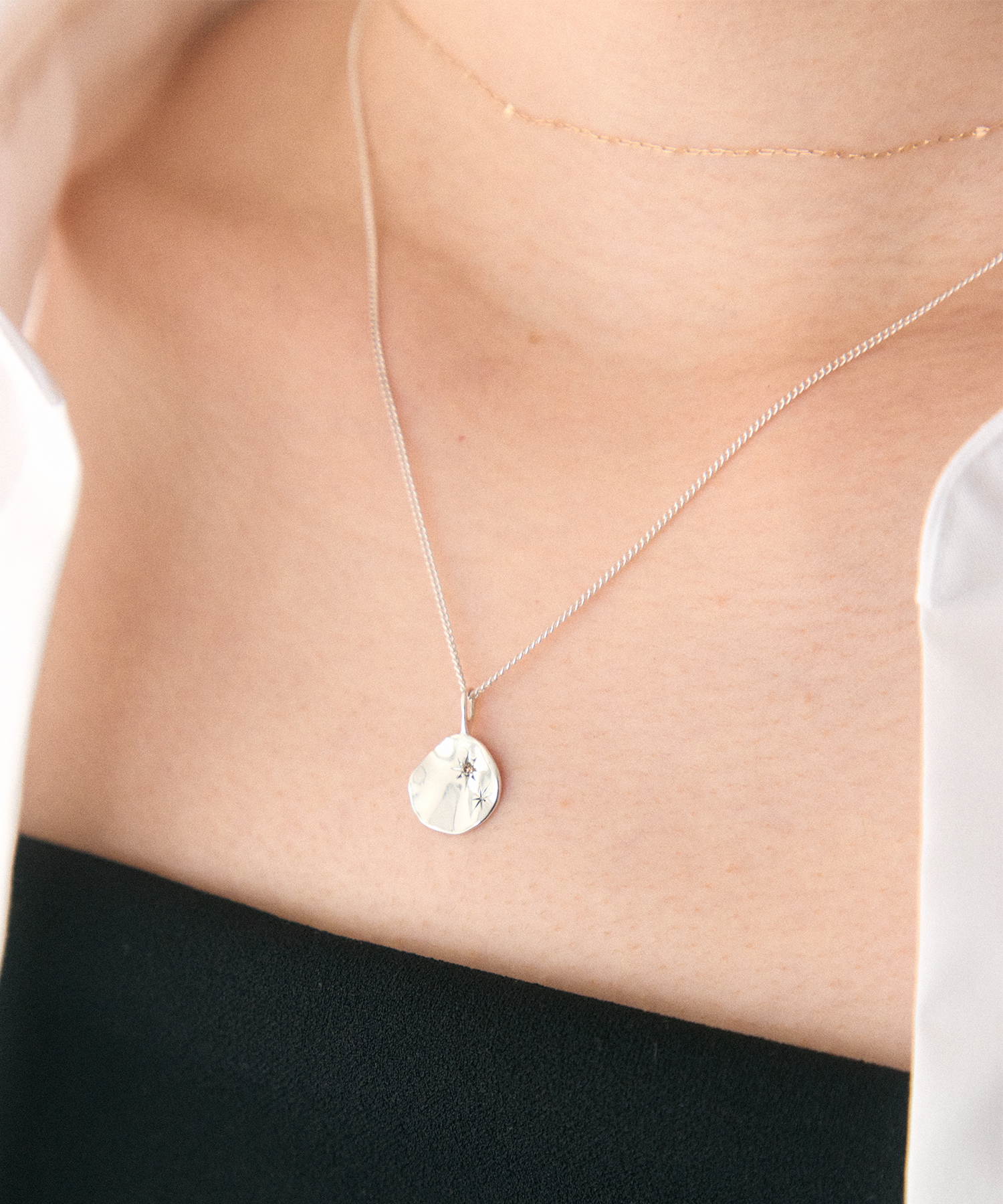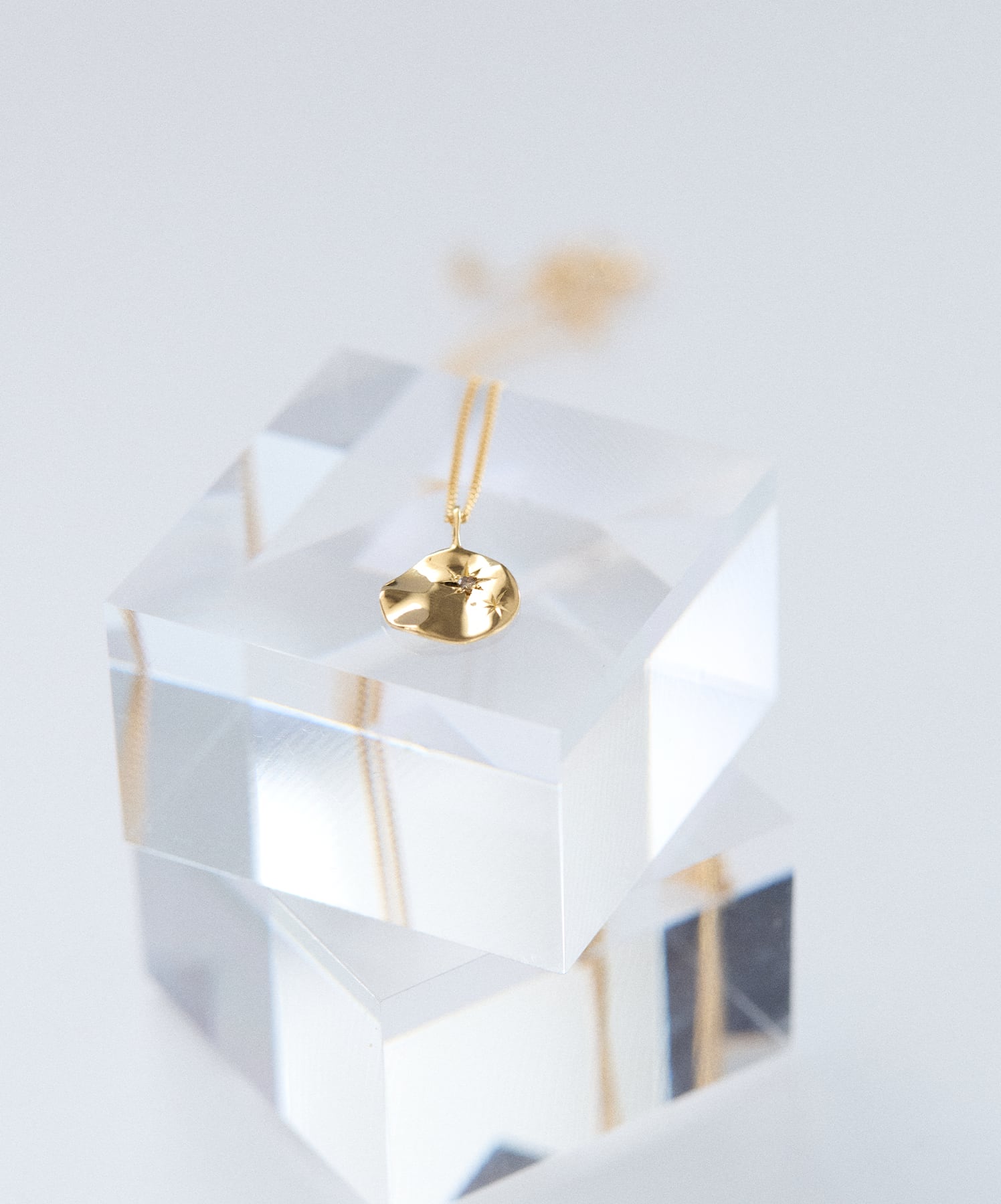 光の軌跡を思わせる彫りを1点ずつ施したネックレス。