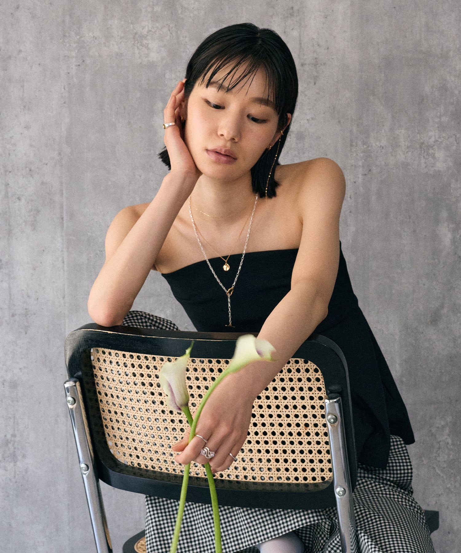 繊細に揺らぐ光の中に、ブラウンダイヤがさりげなくきらめきます。