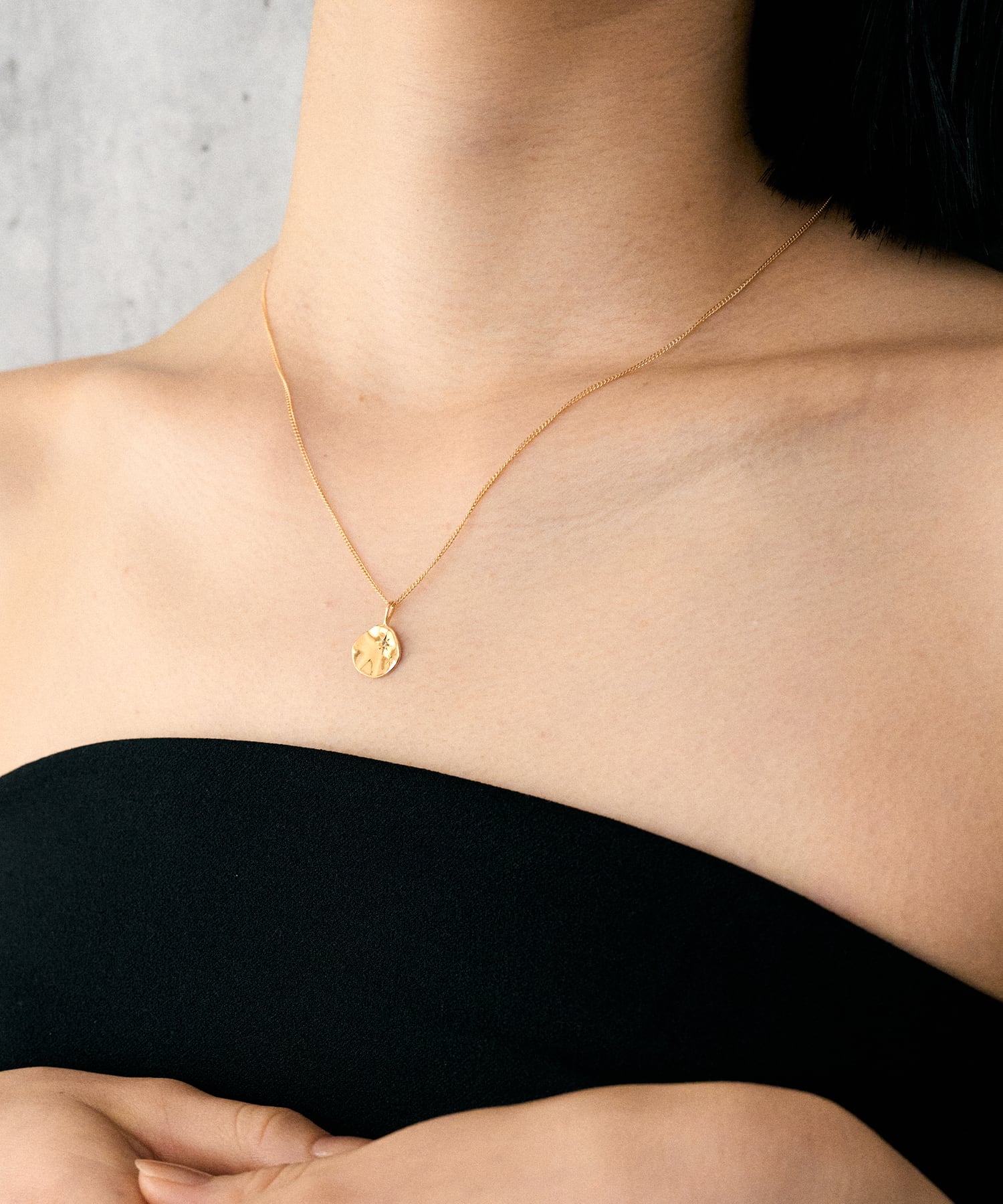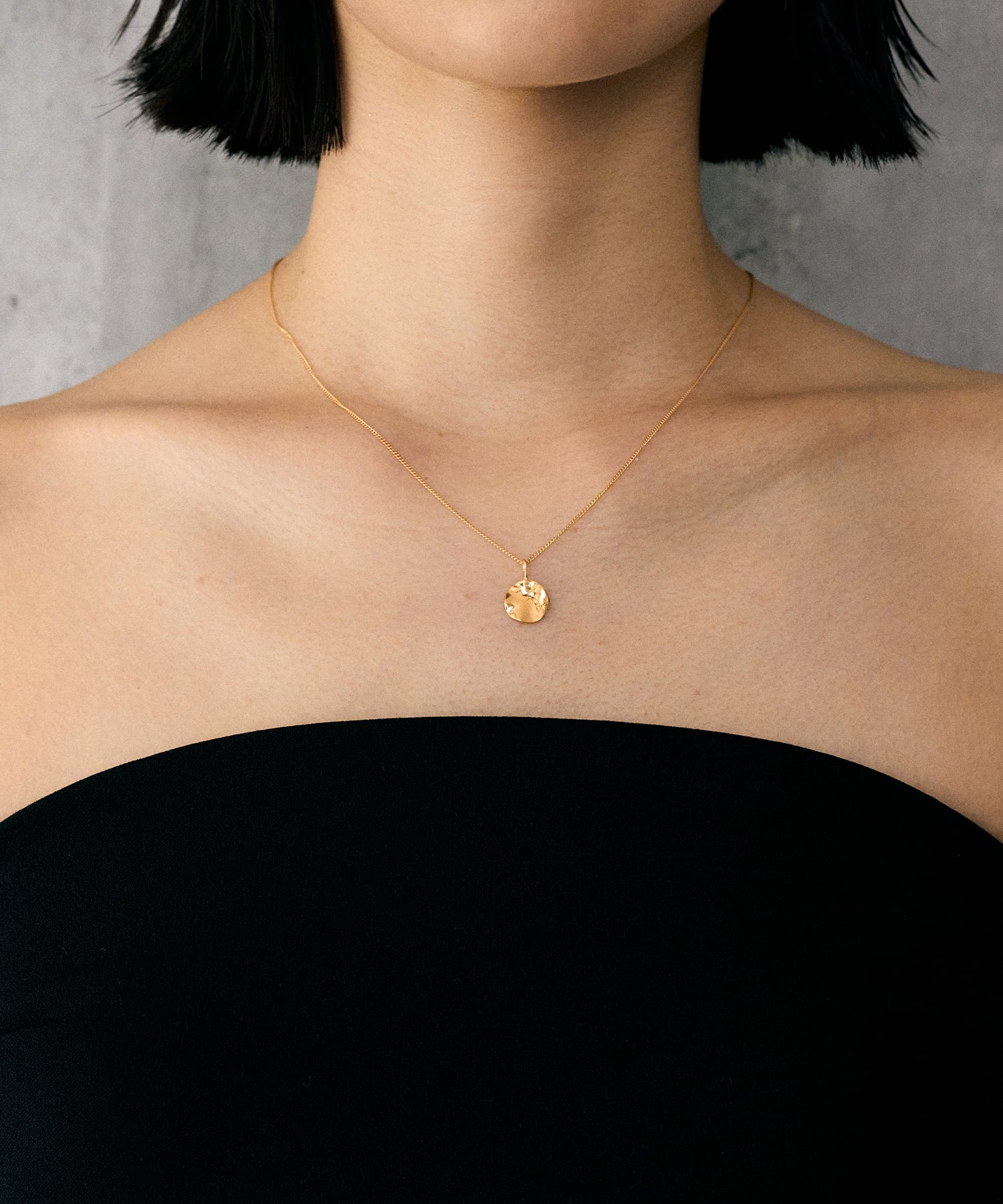 やわらかな輝きが首元に馴染む、程よい存在感のあるデザインです。