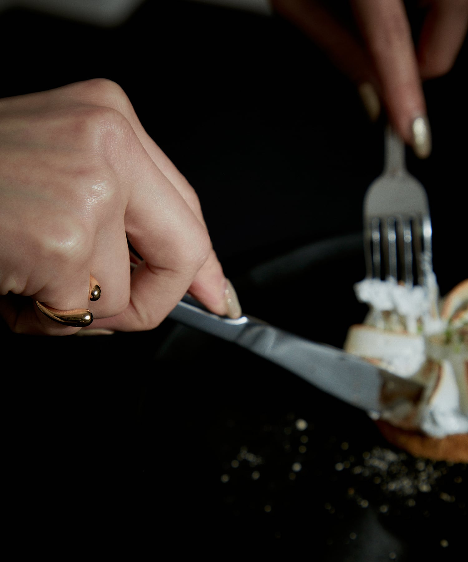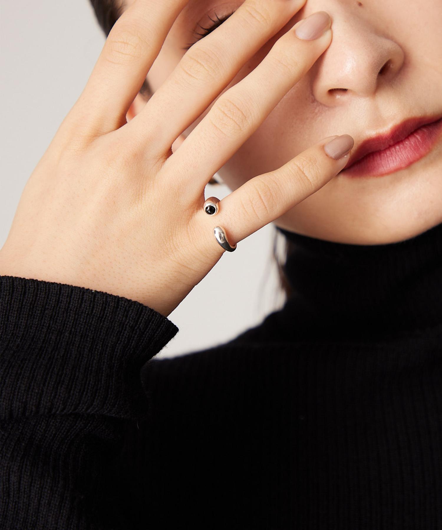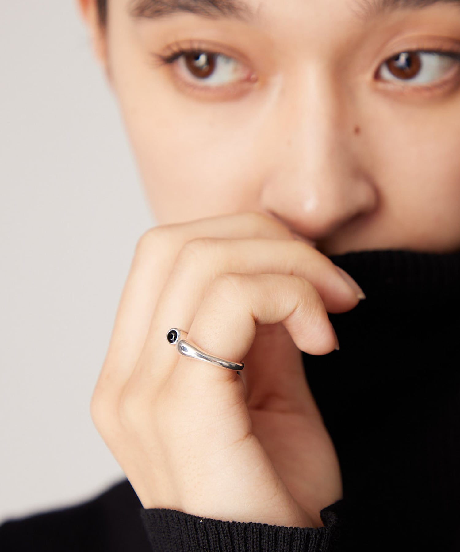 横からさりげなく見えるオニキスがコーディネートのポイントに。